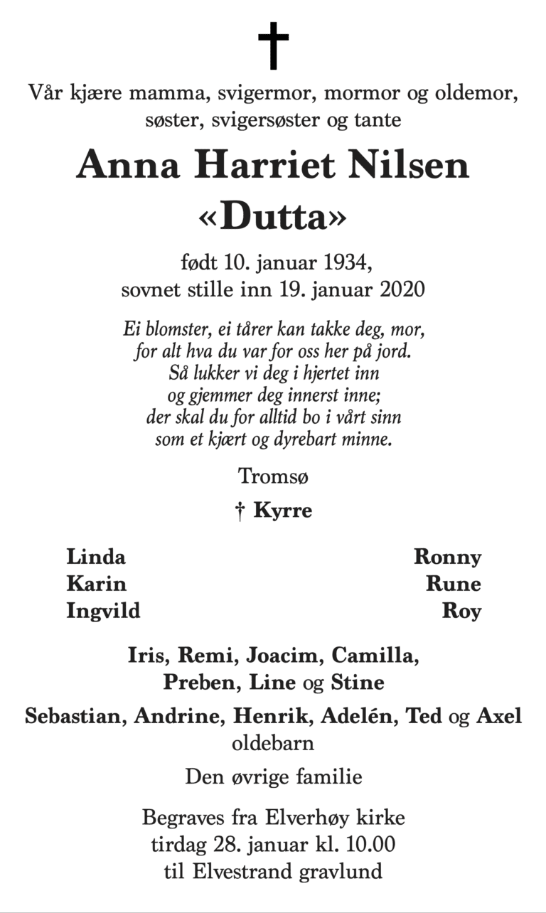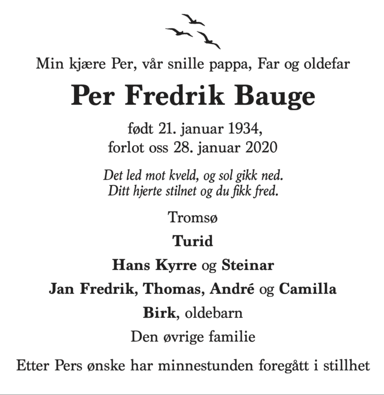 Her finner du minnesider fram til slutten av januar 2024. Nyere minnesider er flyttet over til den nasjonale portalen.